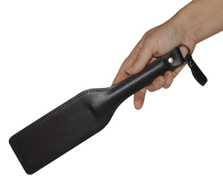 Шлепалка изготовлена из натуральной кожи. Рокоять имеет жесткую основу. Ширина - 6,5 см.