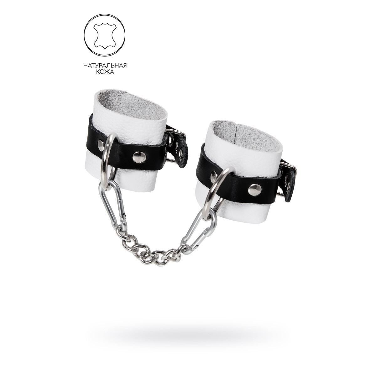 Готовы играть по-взрослому? Не бойтесь своих желаний! Основатели бренда уверены: лучший способ избавиться от искушения - поддаться ему! Добавьте пикантную деталь в ролевую игру и воплотите самую смелую сексуальную фантазию в реальность! Эти мягкие, белые, кожаные наручники с люверсами на жёстких, чёрных ремешках могут стать стильным аксессуаром, а могут послужить вашим целям по своему прямому назначению. Частичное обездвиживание и невозможность двигать руками дают вам полную власть над партнером – взрослые игры для взрослых. Наличие двух колец и карабинов, соединенных между собой металлической цепочкой, позволяет использовать изделие как раздельно – аксессуар-манжеты, так и как наручники для фиксации. К широким металлическим кольцам также можно присоединить и другие аксессуары при помощи карабинов. Благодаря универсальному размеру наручники могут использоваться и мужчинами, и женщинами. Размер легко регулируется с помощью металлических пряжек, органично вписывающихся в общий стиль. Длина манжет - 18 см, ширина - 5,5 см. Длина сцепки - 20 см.