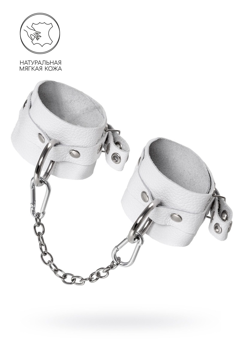 Самый мягкие оковы из всей линейки российского производителя Pecado. Сексуальный атрибут изготовлен из безопасной и натуральной кожи. Насыщенно белый цвет и терпкий аромат материала повышают градус возбуждения в процессе ролевых игр. Манжеты и ремешки девайся очень тактильно приятные. Они не мнутся, не тянутся и обладают повышенной износостойкостью. Вся фурнитура высокого качества. На тонких ремешках имеются отверстия с люверсами, для подбора нужного обхвата. Благодаря стальной застежке аксессуар легко застегивается и расстегивается. Между собой оковы присоединяются с помощью карабинов и короткой цепочки. Длина манжет – 25 см, ширина - 5,5 см. Длина сцепки – 24 см.