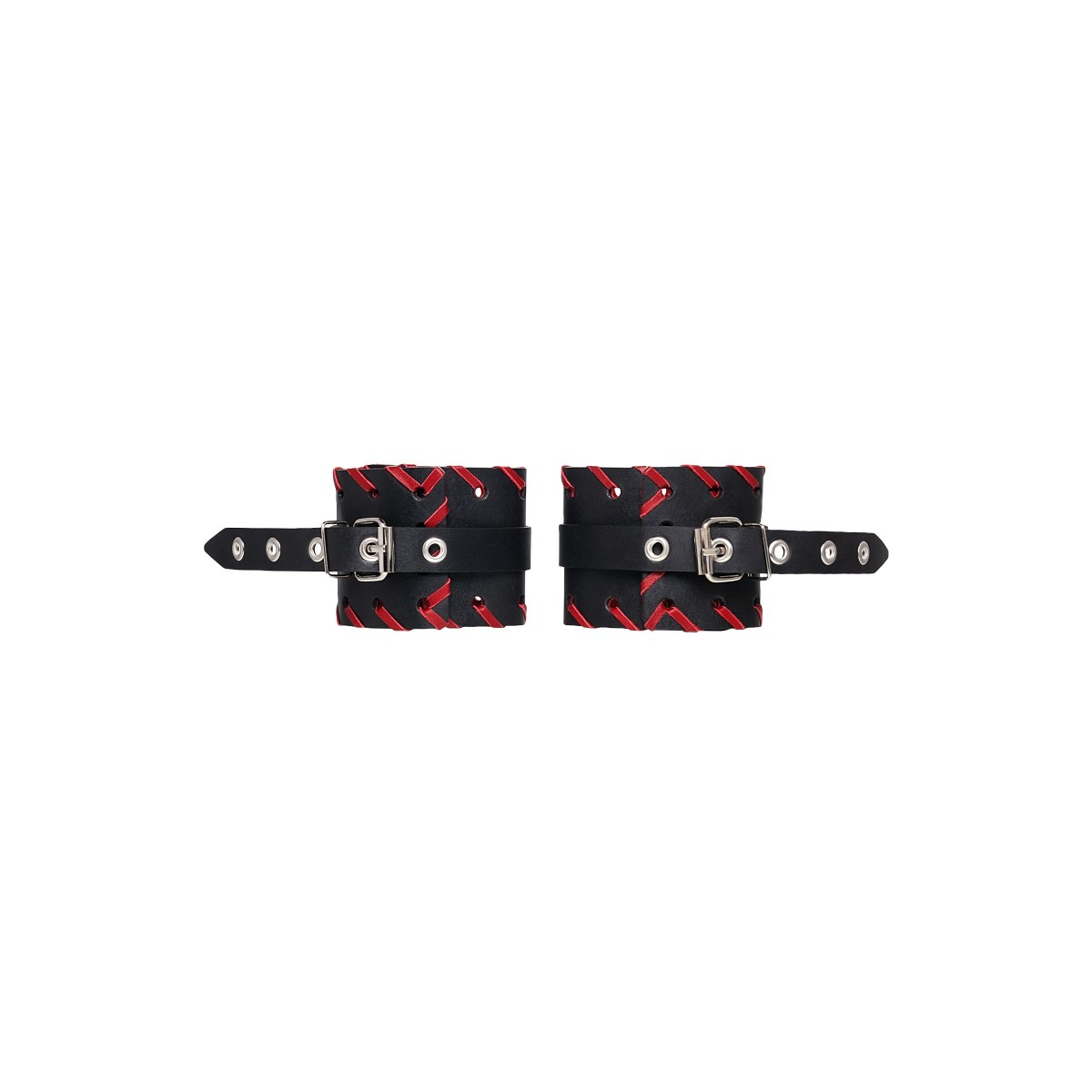 Готовы играть по-взрослому? Не бойтесь своих желаний! Основатели бренда уверены: лучший способ избавиться от искушения - поддаться ему! Добавьте пикантную деталь в ролевую игру и воплотите самую смелую сексуальную фантазию в реальность! Двухслойные кожаные оковы с окантовкой красного цвета, могут стать стильным аксессуаром на «свободных» руках, но могут послужить вашим целям и фантазиям по своему прямому назначению. Наличие двух карабинов и колец позволяет использовать изделие как раздельно – аксессуар-манжеты, так и как наручники для фиксации. К широким металлическим кольцам также можно присоединить и другие аксессуары при помощи карабинов. Благодаря универсальному размеру наручники могут использоваться и мужчинами, и женщинами. Размер легко регулируется с помощью металлических пряжек, органично вписывающихся в общий стиль. Длина манжет - 25 см, ширина манжет - 6,5 см. Длина сцепки - 20 см.