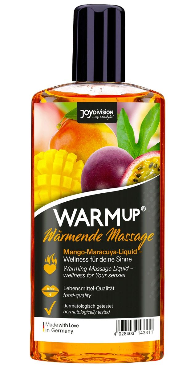 Разогревающее массажное масло с потрясающим тропическим ароматом манго и маракуйя. Нанесите его на кожу массирующими движениями, а затем подуйте - почувствуйте приятное, возбуждающее тепло. Стимулируйте согревающим эротическим массажем самые чувствительные участки его/её тела, масло съедобное - вы можете абсолютно безопасно и с удовольствием слизывать его с тела вашего партнера! Легко смывается водой, дерматологически и клинически протестировано.