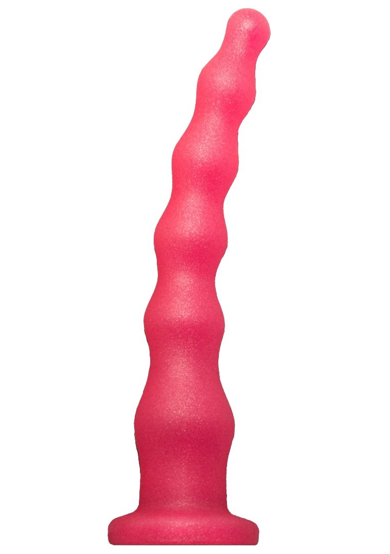 Розовый удлинённый анальный стимулятор с шариками. Можно использовать с креплением в виде кольца или применять отдельно, без страпона.